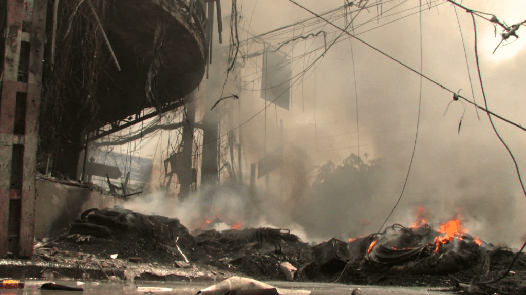 Fire. Screams. Scuffles over waning supplies. The occasional boulder smashes against stone, hurled over the wall and punctuated by the hoarse war-cries of an enemy dialect. Wind whistling through tattered awnings and collapsing structures that once formed the border of a sunny, bustling market. Now there is no sun. The air is thick with smoke.