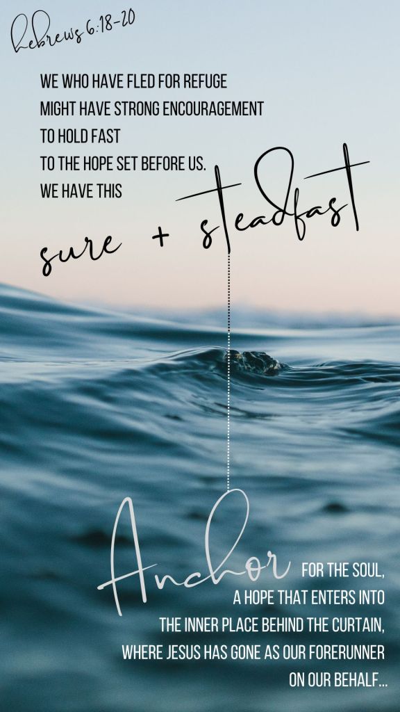In the same way, Christ took our anchor in. Behind the veil. It holds us safe until we enter calm seas and can follow Him.”