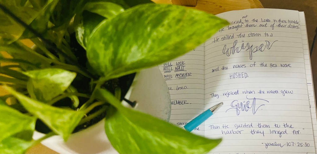 He stilled the storm to a whisper and the waves of the sea were hushed. They rejoiced when the waves grew quiet. Then He guided them to the harbor they longed for.”
